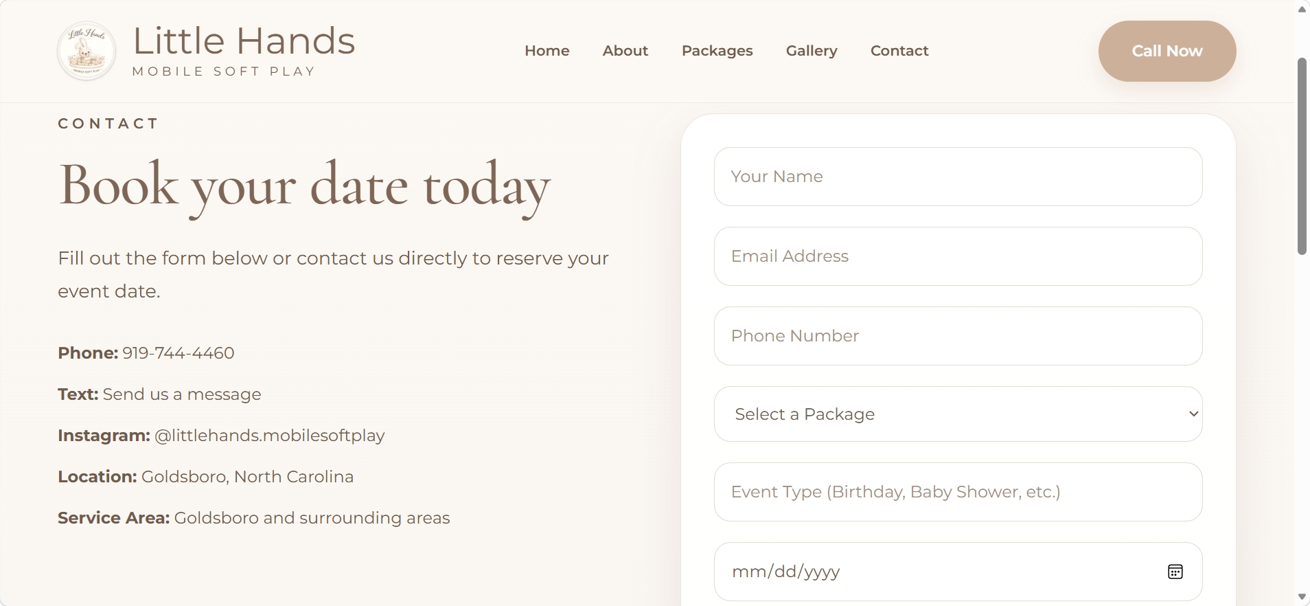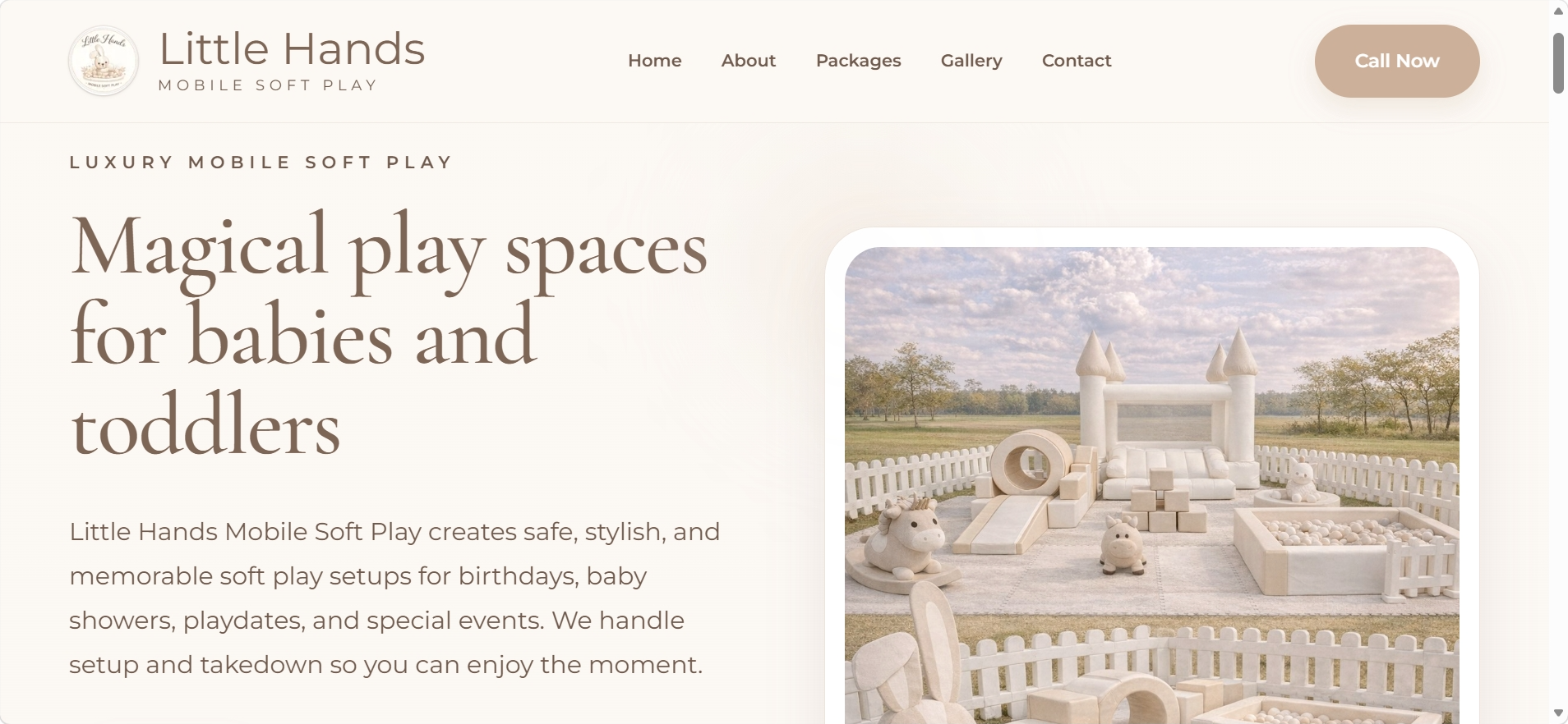 A soft play rental website designed and developed to present services clearly, support mobile browsing, and help convert visitors into inquiries for events and bookings.