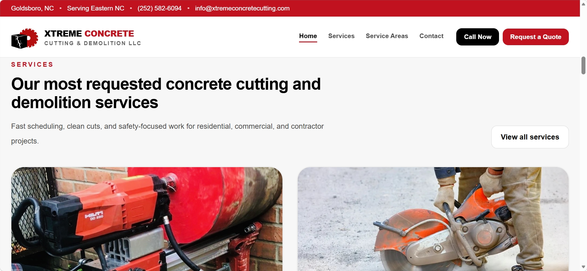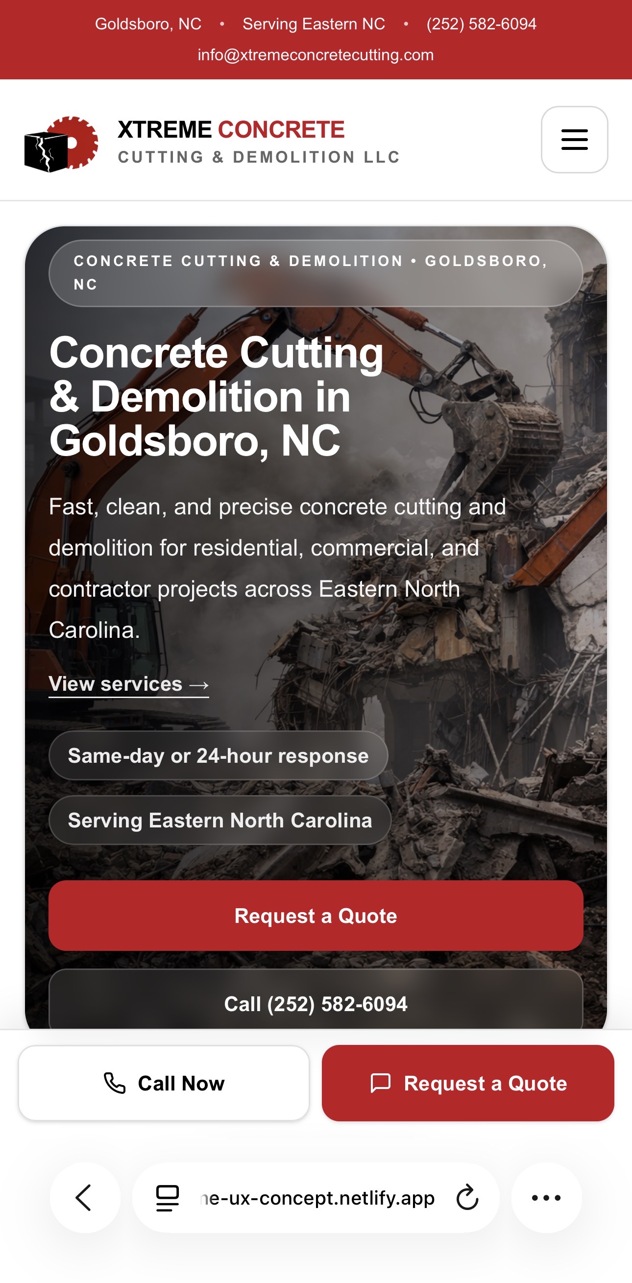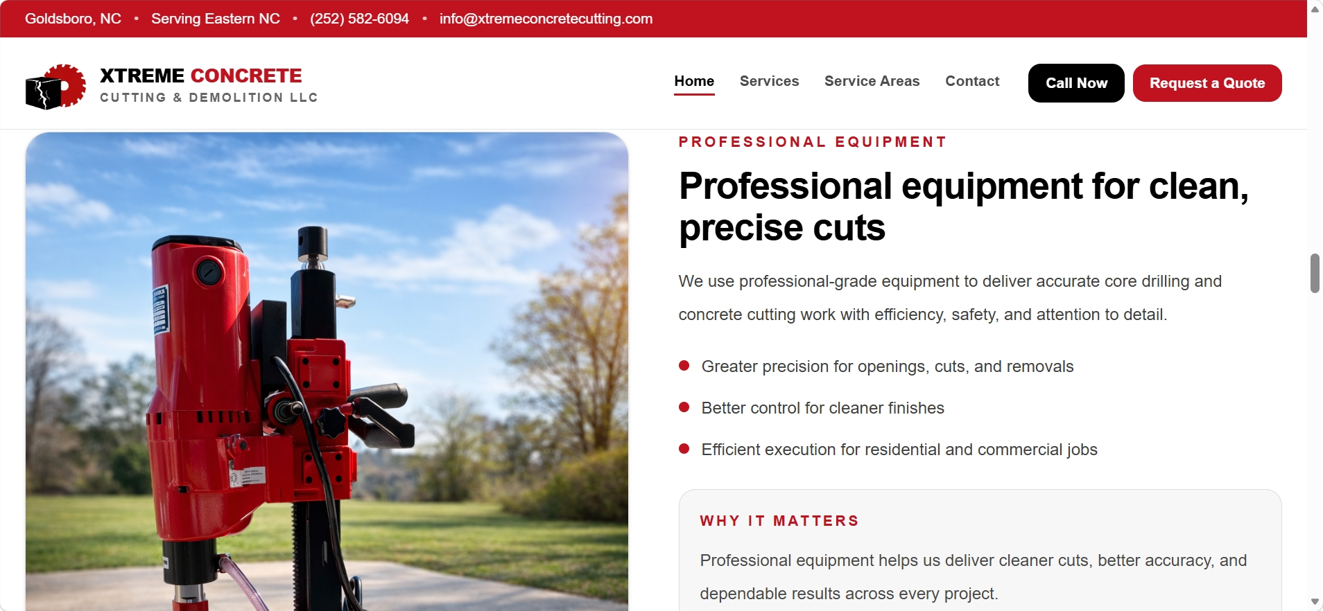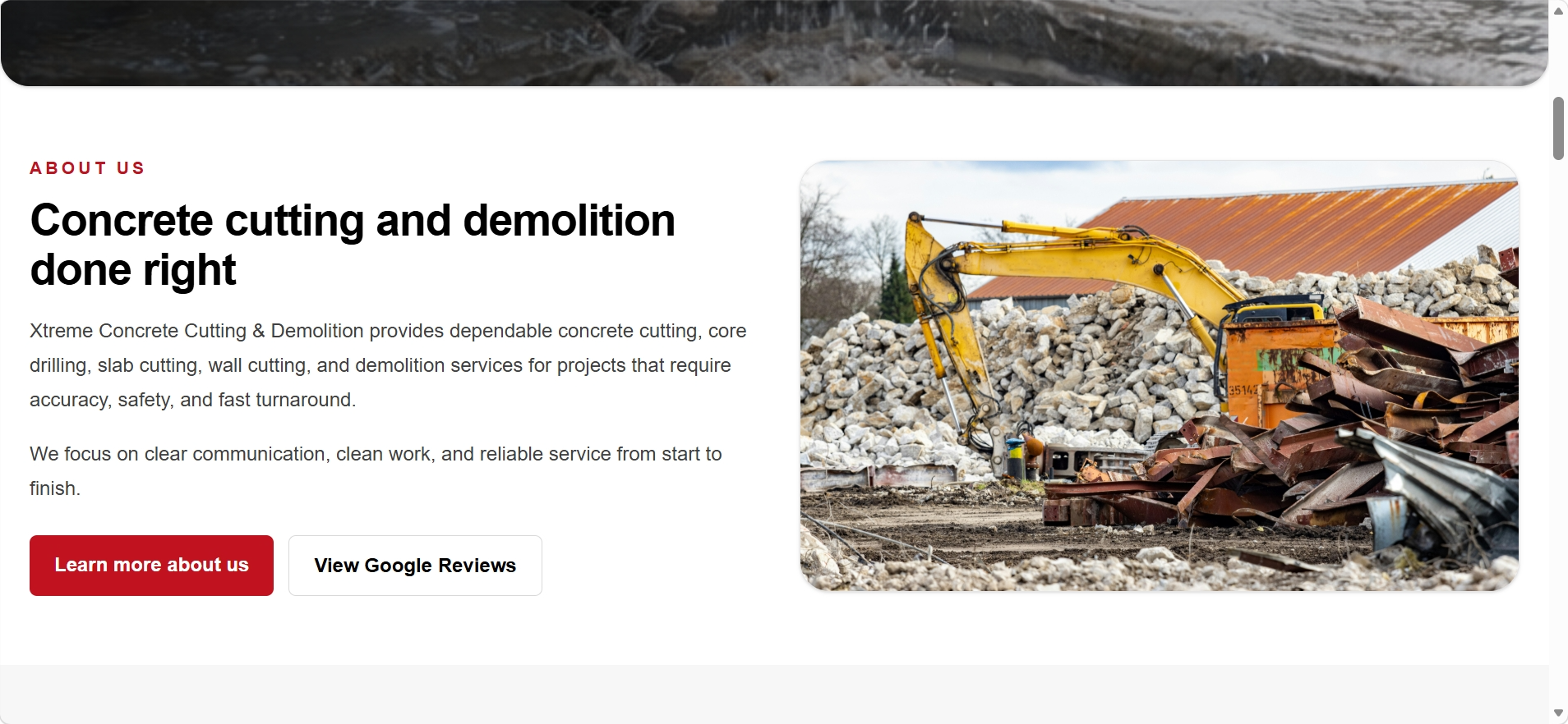 This UX and SEO exploration reimagines the Xtreme Concrete Cutting & Demolition website with a stronger focus on content hierarchy, service clarity, and local relevance, creating a more structured and conversion-focused experience.