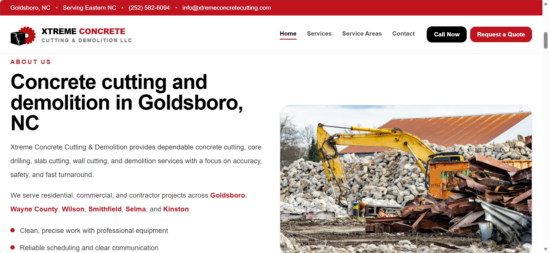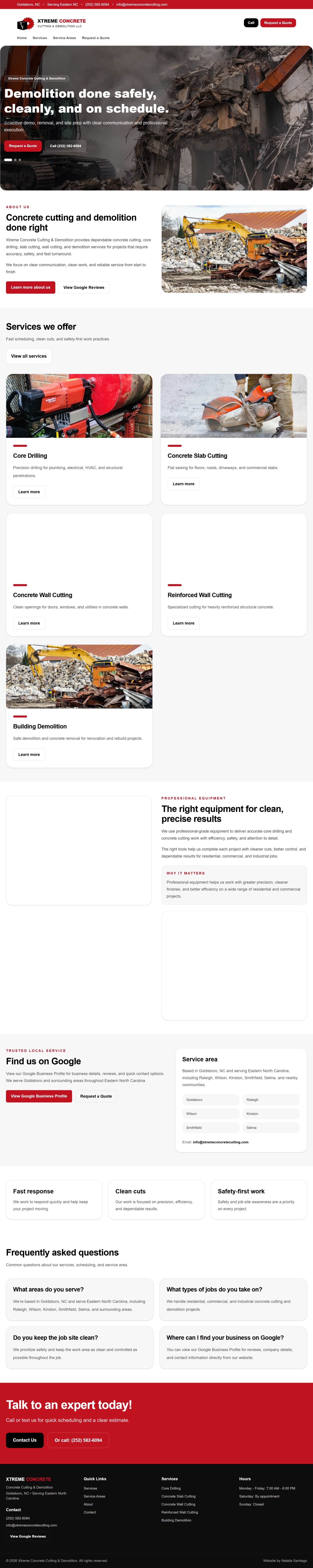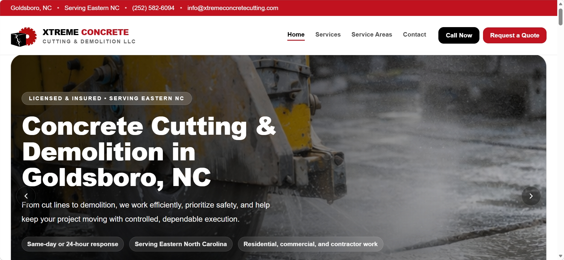 This UX and SEO exploration reimagines the Xtreme Concrete Cutting & Demolition website with a stronger focus on content hierarchy, service clarity, and local relevance, creating a more structured and conversion-focused experience.
