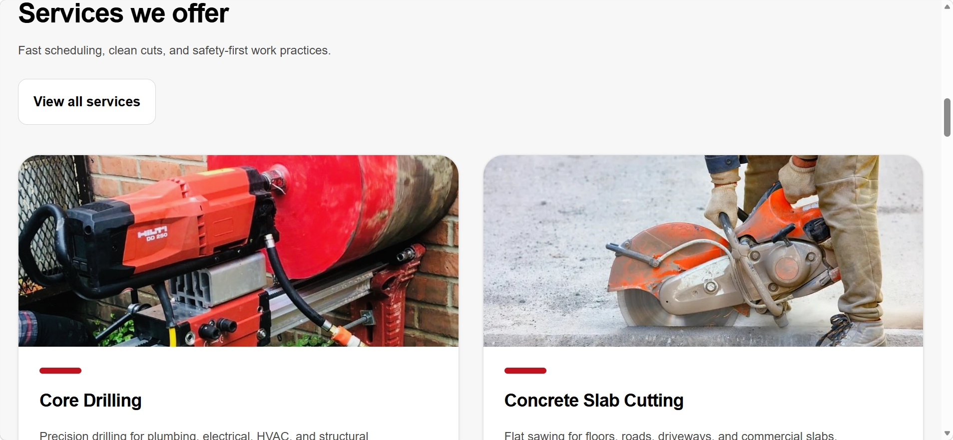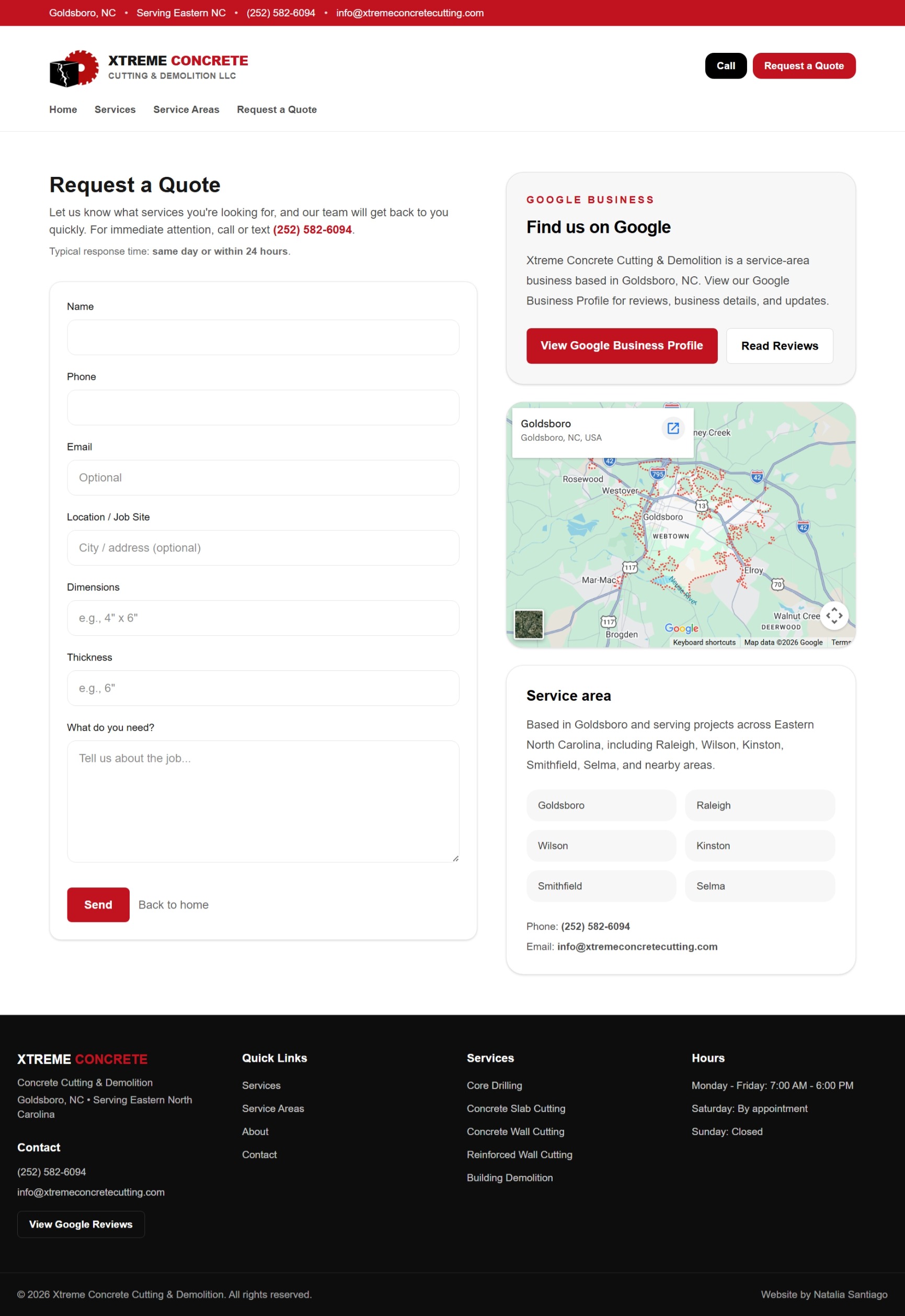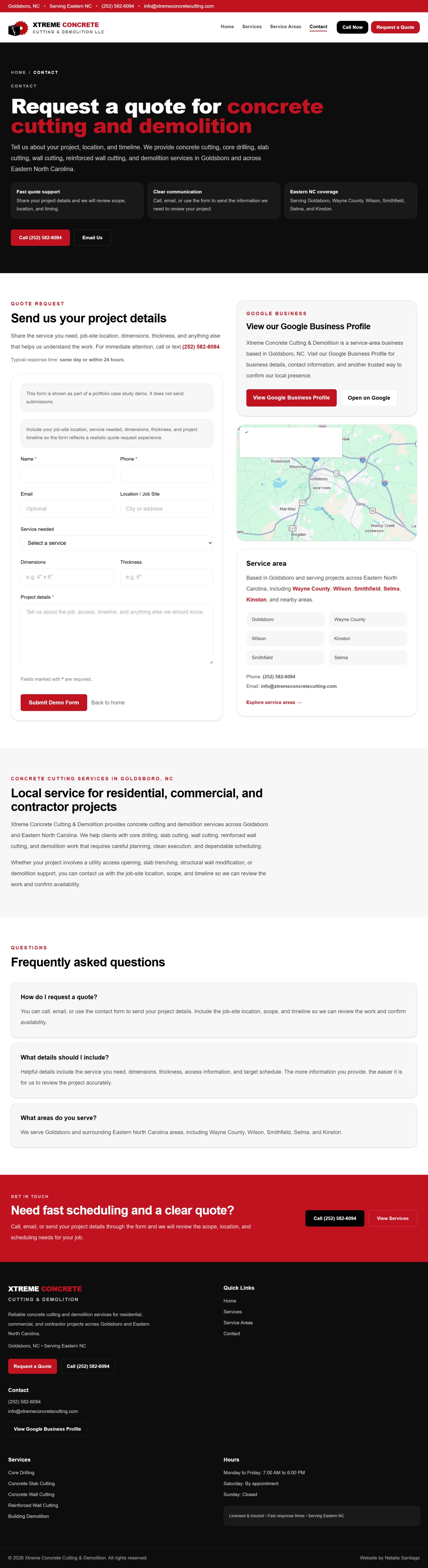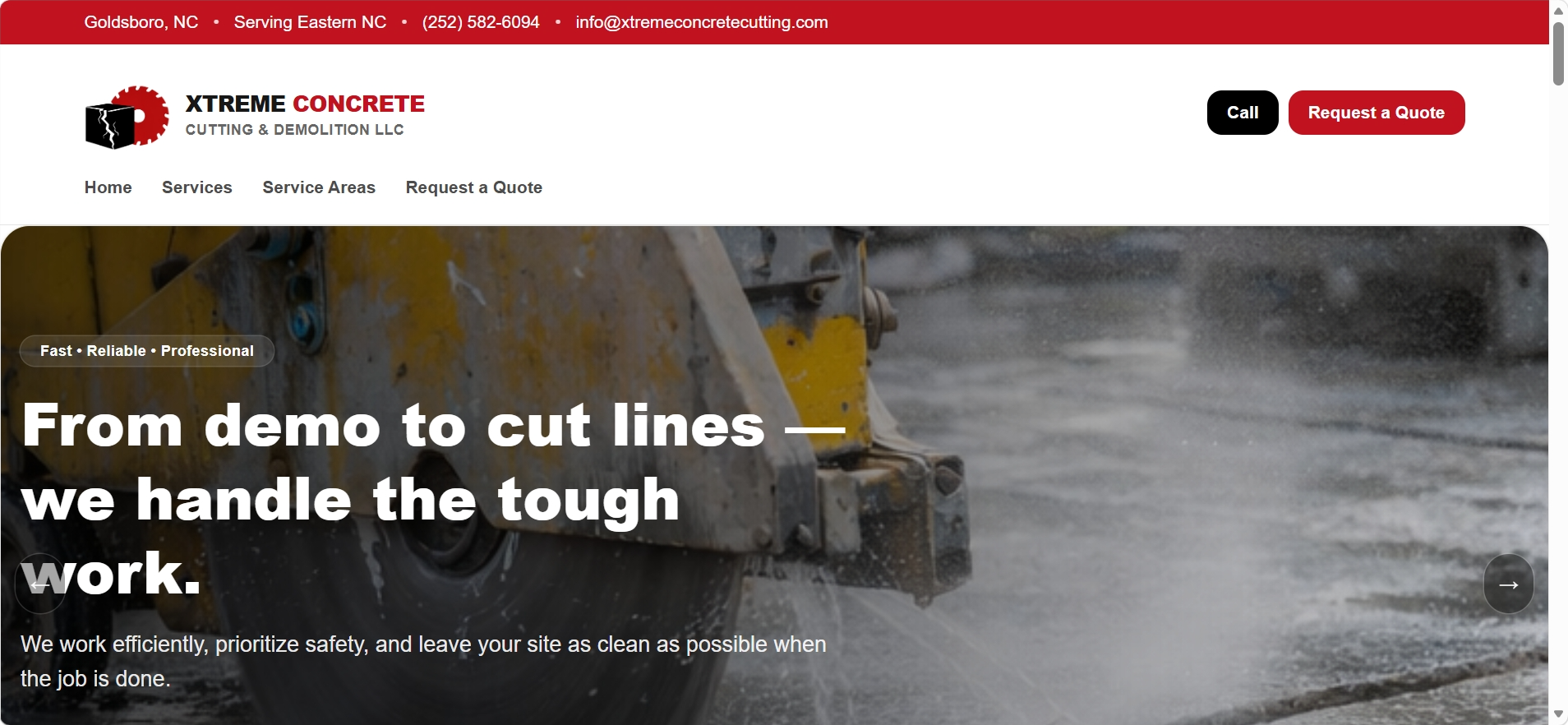 This UX and SEO exploration reimagines the Xtreme Concrete Cutting & Demolition website with a stronger focus on content hierarchy, service clarity, and local relevance, creating a more structured and conversion-focused experience.